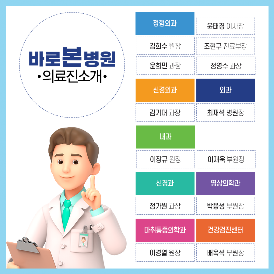 정형외과, 신경외과, 일반외과, 내과, 신경과, 종합건강검진