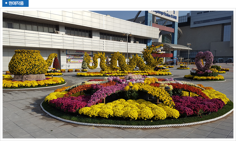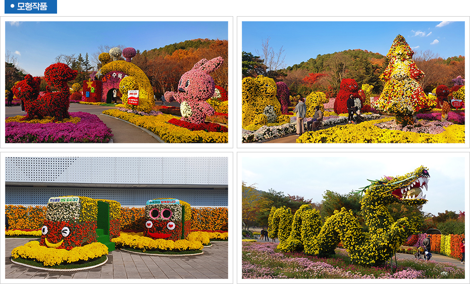 - 대구를 홍보할 수 있는 비행기, 수달(도달쑤) 등의 모형작을 국화 토피어리로 제작하여 전시