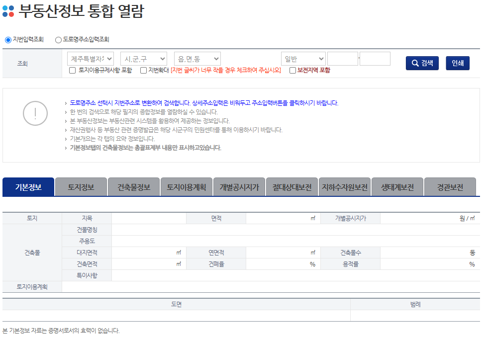 위 그림과 같이 지역별 부동산정보조회가 됩니다.