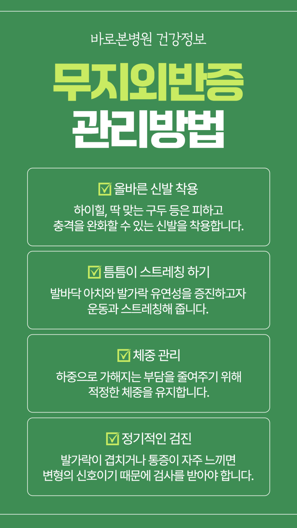 4. 통증 지속·악화 시 정형외과(족부 전문) 진료 권장