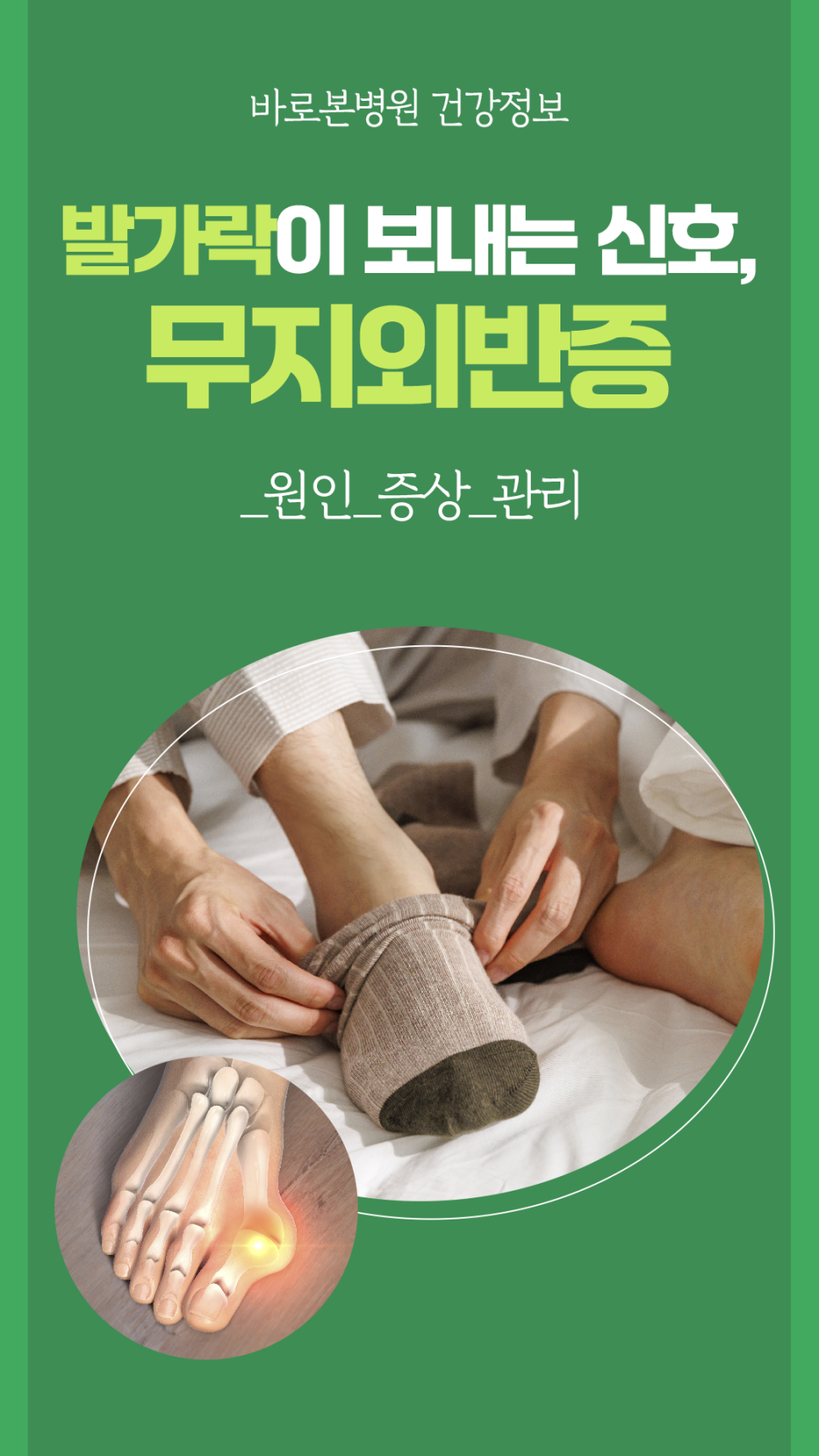 - 양말이나 신발 착용 시 통증으로 인해 생활이 불편해지는 경우 등이 대표적입니다.