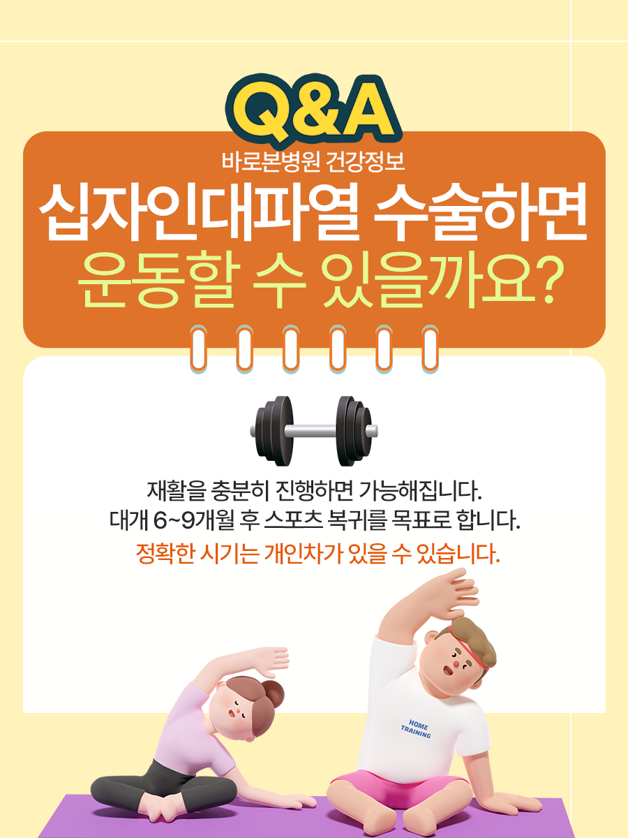 십자인대파열은 많은 분들이 겪을 수 있는 손상이지만, 적절한 진단과 치료, 체계적인 재활을 통해 다시 일상과 운동으로 복귀하실 수 있습니다.