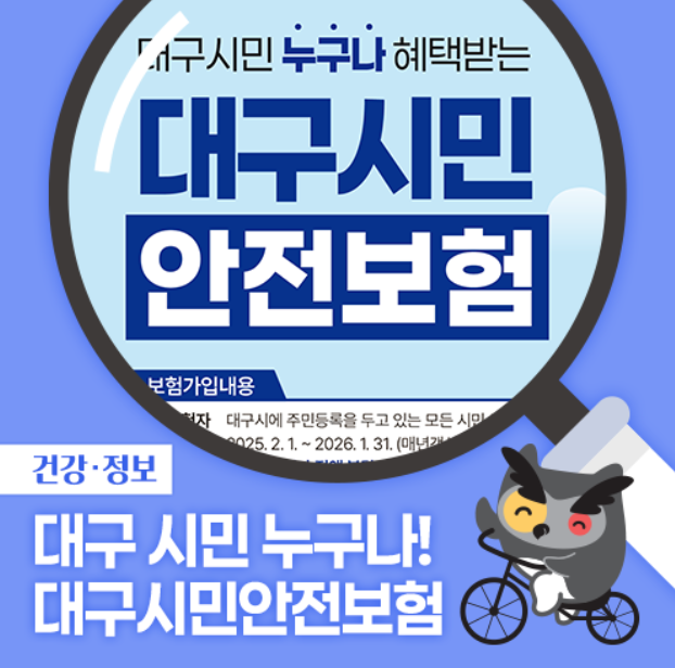 보장 항목 및 보험금 신청 방법 등 자세한 내용은 대구시 홈페이지와 달구벌콜센터(☎120) 또는 보험기관인 한국지방재정공제회(☎1577-5939)를 통해 확인할 수 있다.